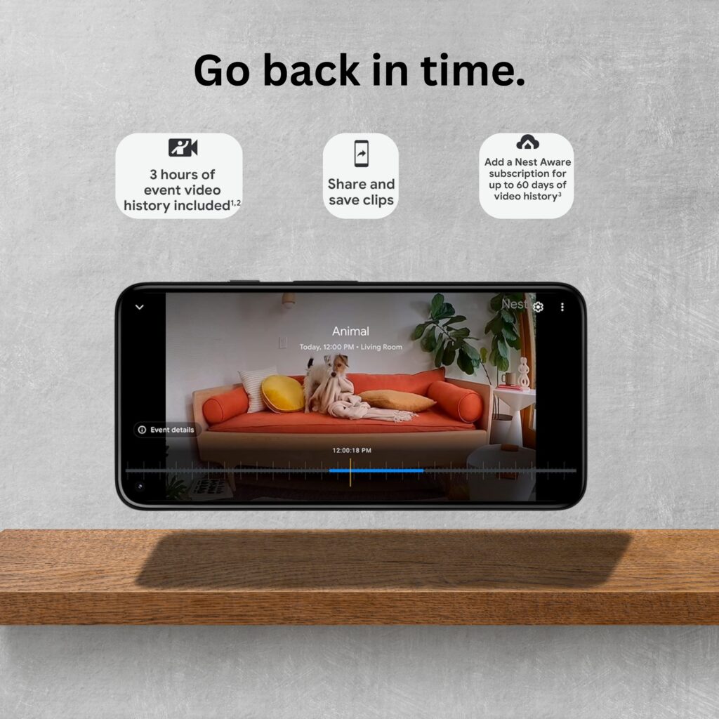 It helps delivers crisp, detailed live video both day and night. So you can always see what’s going on even in complete darkness. - Three Hours Free Event History: